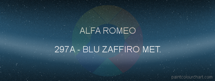 Find all the information on the color reference 297A Blu Zaffiro Met. for Alfa Romeo cars. This shade, which was introduced on Alfa Romeo cars in 2005 - 2010, requires a dark grey undercoat and is used on bodywork. Its dominant colour is blue.
