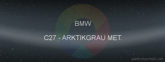 Find all the information on the color reference C27 Arktikgrau Met. for Bmw cars. This shade, which was introduced on Bmw cars in 2015 - 2025, requires a dark grey undercoat and is used on bodywork. Its dominant colour is grey.