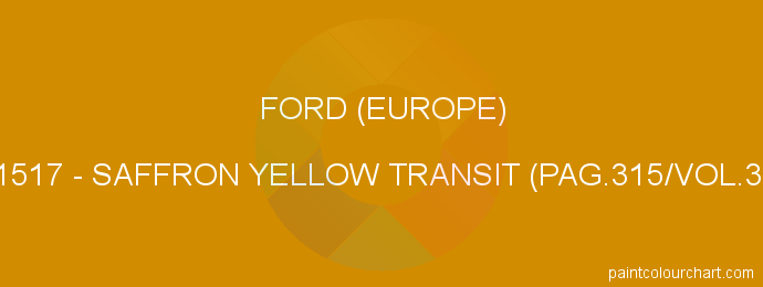Find all the information on the color reference 1517 Saffron Yellow Transit (pag.315/vol.3) for Ford (europe) cars. This shade, which was introduced on Ford (europe) cars in 1979 - 2025, requires a light grey undercoat and is used on bodywork. Its dominant colour is yellow.