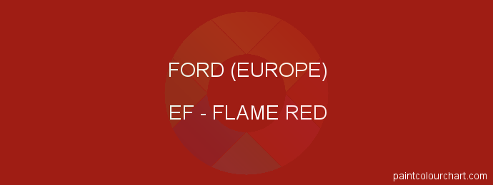 Find all the information on the color reference EF Flame Red for Ford (europe) cars. This shade, which was introduced on Ford (europe) cars in 1999 - 2005, requires a light grey undercoat and is used on bodywork. Its dominant colour is red.