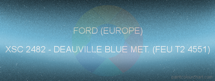 List of the main characteristics of the Ford (europe) XSC 2482 Deauville Blue Met. (feu T2 4551) paint code reference.