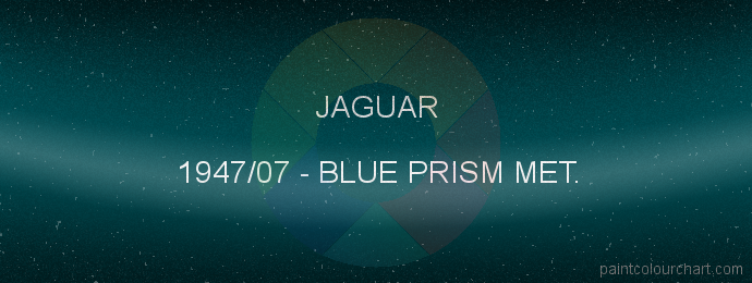 Find all the information on the color reference 1947/07 Blue Prism Met. for Jaguar cars. This shade, which was introduced on Jaguar cars in 2004 - 2008, requires a dark grey undercoat and is used on bodywork. Its dominant colour is blue.