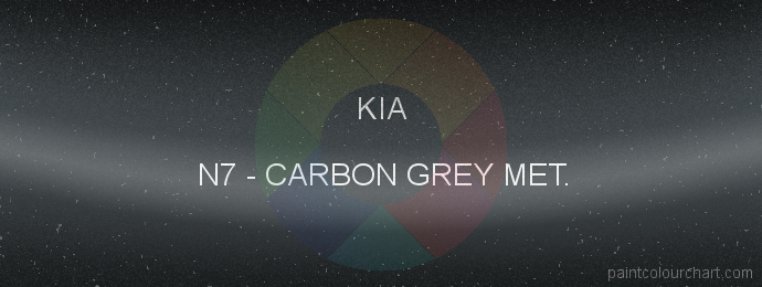Find all the information on the color reference N7 Carbon Grey Met. for Kia cars. This shade, which was introduced on Kia cars in 2003 - 2008, requires a dark grey undercoat and is used on bodywork. Its dominant colour is grey.