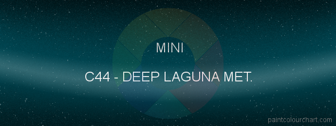 Find all the information on the color reference C44 Deep Laguna Met. for Mini cars. This shade, which was introduced on Mini cars in 2019 - 2025, requires a light grey undercoat and is used on bodywork. Its dominant colour is blue.