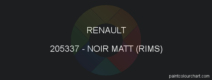 List of the main characteristics of the Renault 205337 Noir Matt (rims) paint code reference.