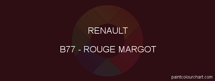 Find all the information on the color reference B77 Rouge Margot for Renault cars. This shade, which was introduced on Renault cars in 2000 - 2003, requires a light grey undercoat and is used on bodywork. Its dominant colour is red.