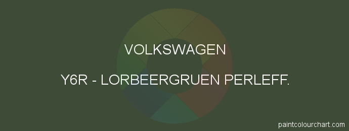 Find all the information on the color reference Y6R Lorbeergruen Perleff. for Volkswagen cars. This shade, which was introduced on Volkswagen cars in 1999 - 2004, requires a dark grey undercoat and is used on bodywork. Its dominant colour is green.